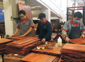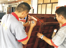 御乾堂紅木在細(xì)節(jié)上也體現(xiàn)著高水準(zhǔn),僅刮磨這一道工序就有平磨、花磨、拋光等八道工序和十五個作業(yè)標(biāo)準(zhǔn),種種體現(xiàn)出生產(chǎn)管理規(guī)范化。